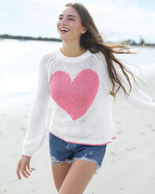 Wooden Ships Amelia Heart L/S Crew Cotton-Pink/White/Cream