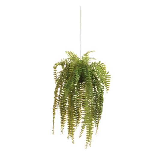 100% realistic- an absolutely perfect copy of the Boston Fern. We've added a jute string for hanging. So authentic you have to remind yourself not to water it.