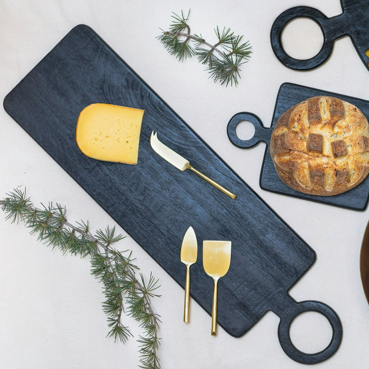 With our Black Mango Wood boards, a bit of contrast goes a long way making them a bold addition to any plating. Handcrafted from protected groves in India, this dreamy platter boasts a darkened color palette, beautifully accenting its natural striations and subtle highlights.