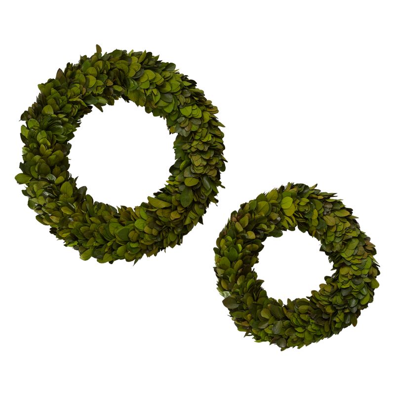 Lush and green preserved holly leaves are layered together to make the Atwell Wreath, a fresh take on a classic holiday decoration. The Atwell can be styled as is, but looks lovely layered with gold Christmas ornaments and lights.