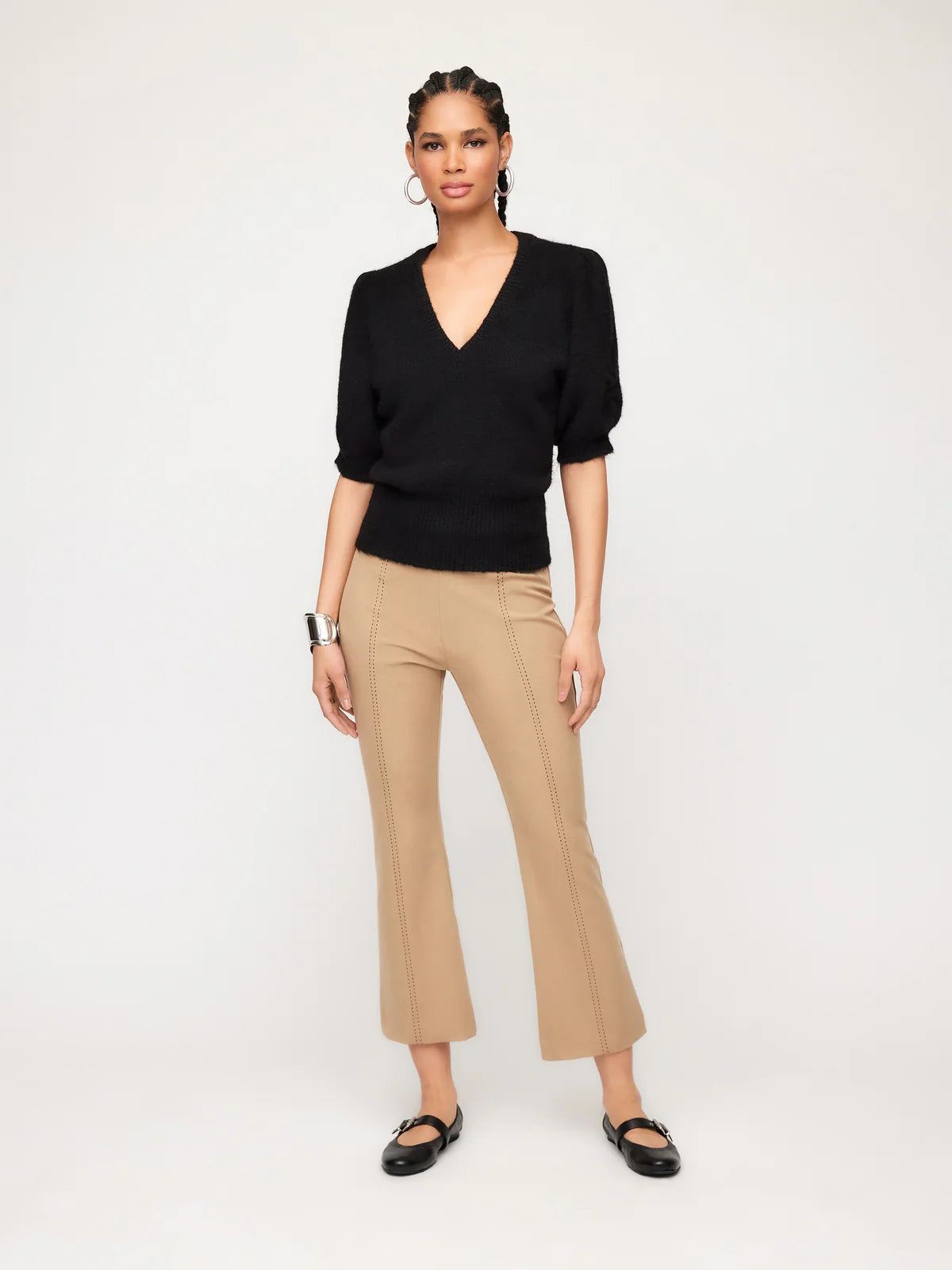 Bennet Shirred Sleeve Sweater- Black