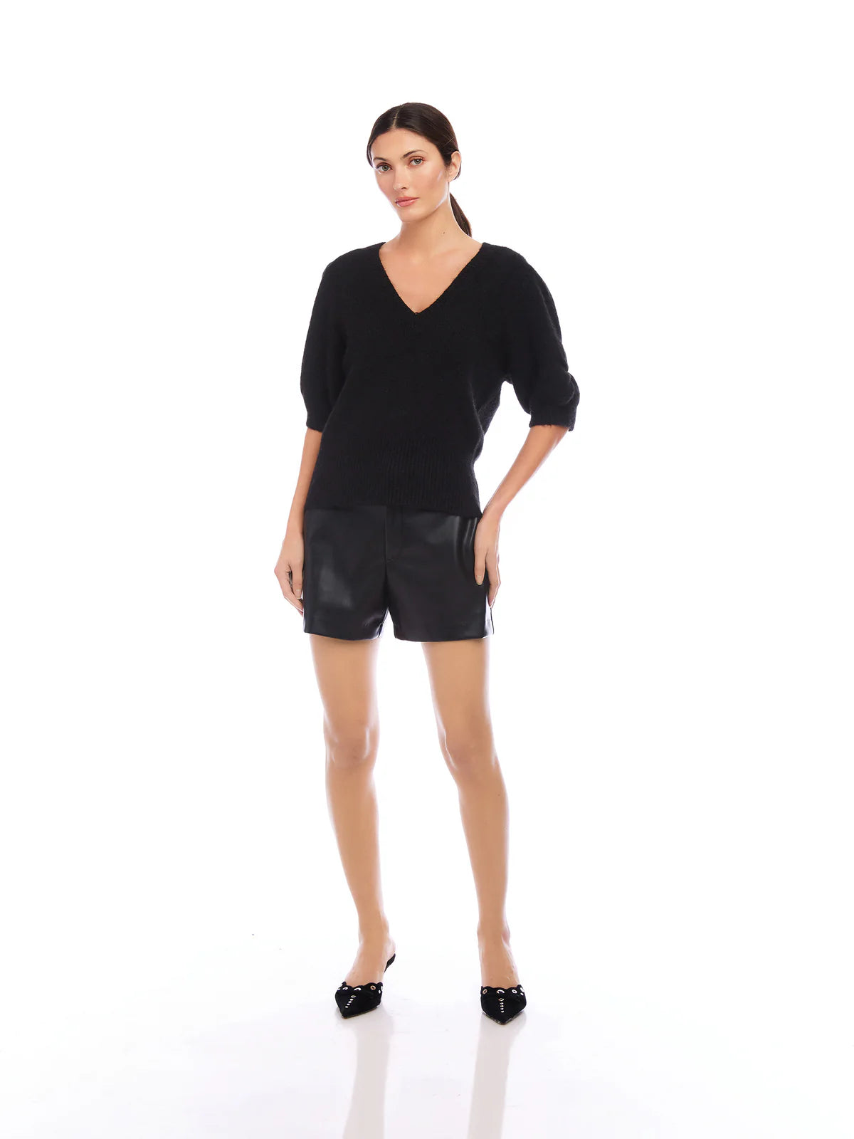 Fifteen Twenty Bennet Shirred Sleeve Sweater in Black