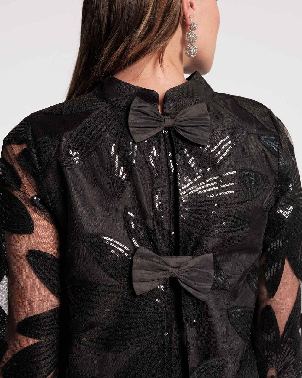 Frances Valentine Diplomat Mini Dress Sequin Floral Black