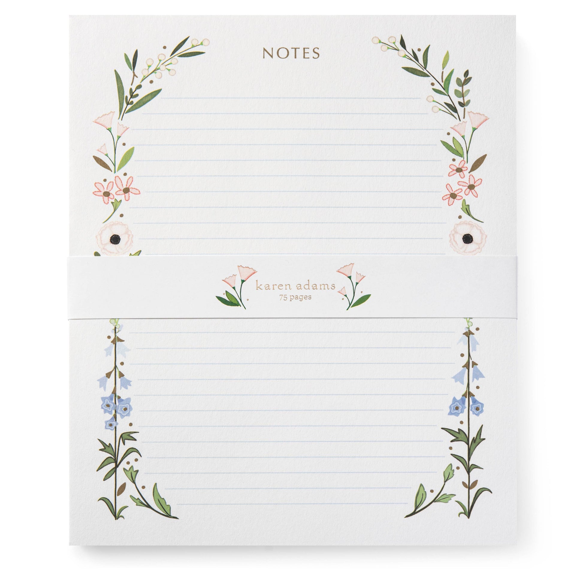 Let the blooming flowers accompany your notes with a rosy joy and celebrate the pages together! Perfect for list-making, note-taking, writing a memo, poem, ideas, whatever takes your fancy so long as it doesn't mind a nice lined paper with a sturdy back and a bit of inspirational floral zest.