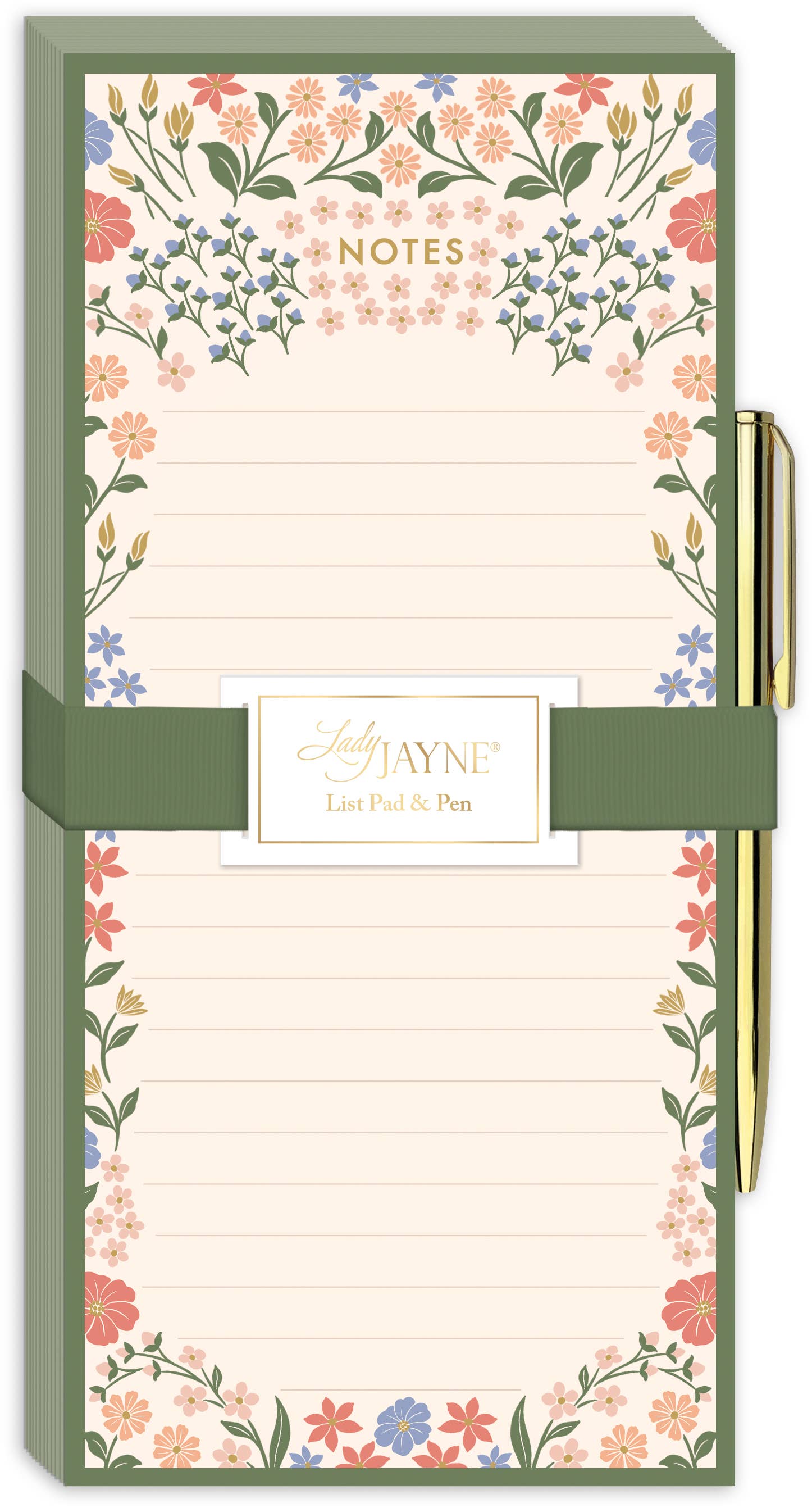 Magnetic list pad with gold metal ballpoint pen and ribbon 100 sheets 4" x 8.5"