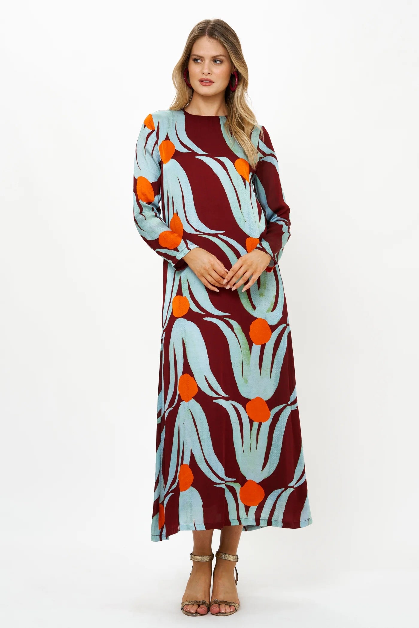 Oliphant Long Sleeve Shift Maxi- Tulip Orange