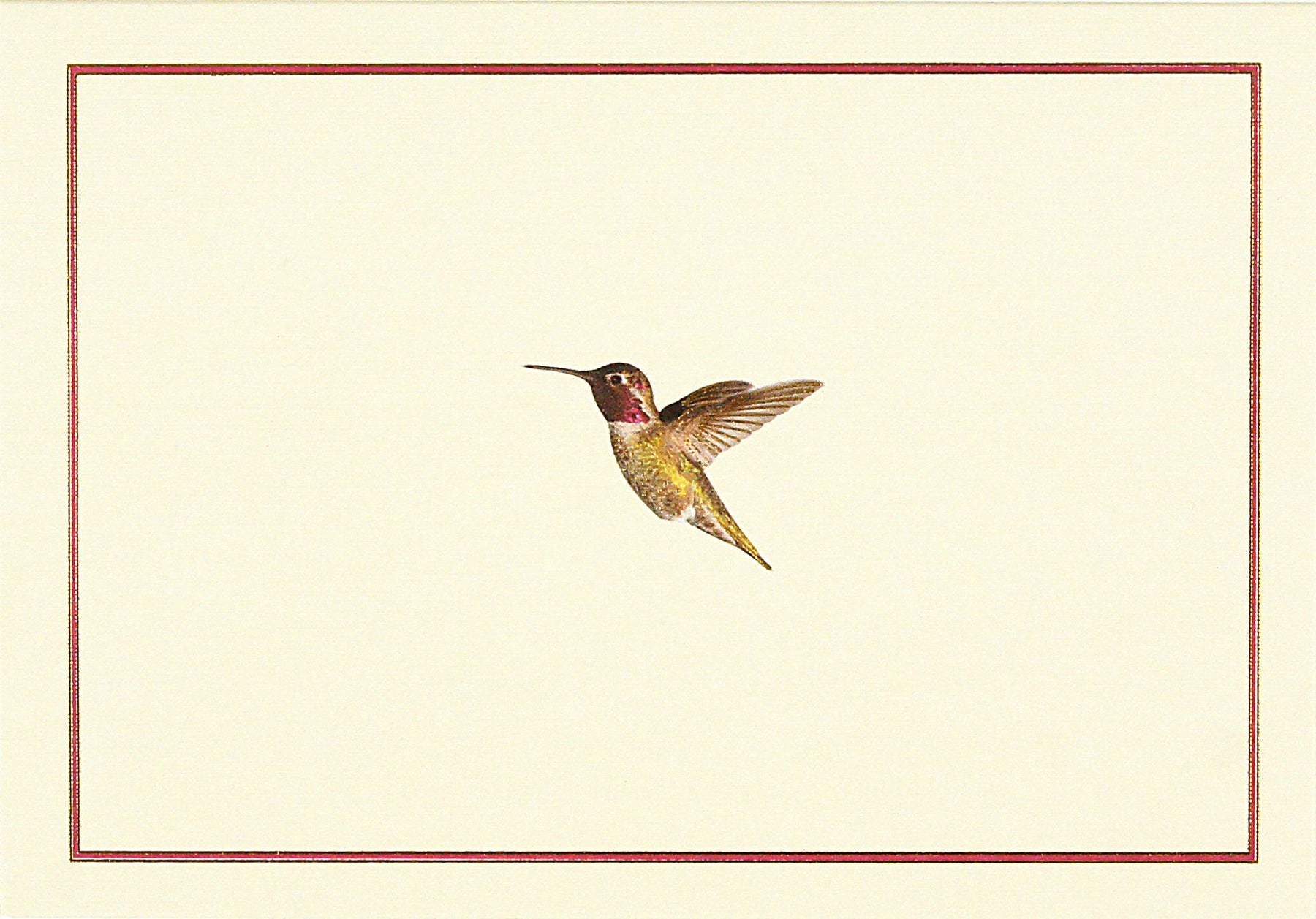 Design depicts a jewel-hued hummingbird on an ivory background, set off with a matching border.