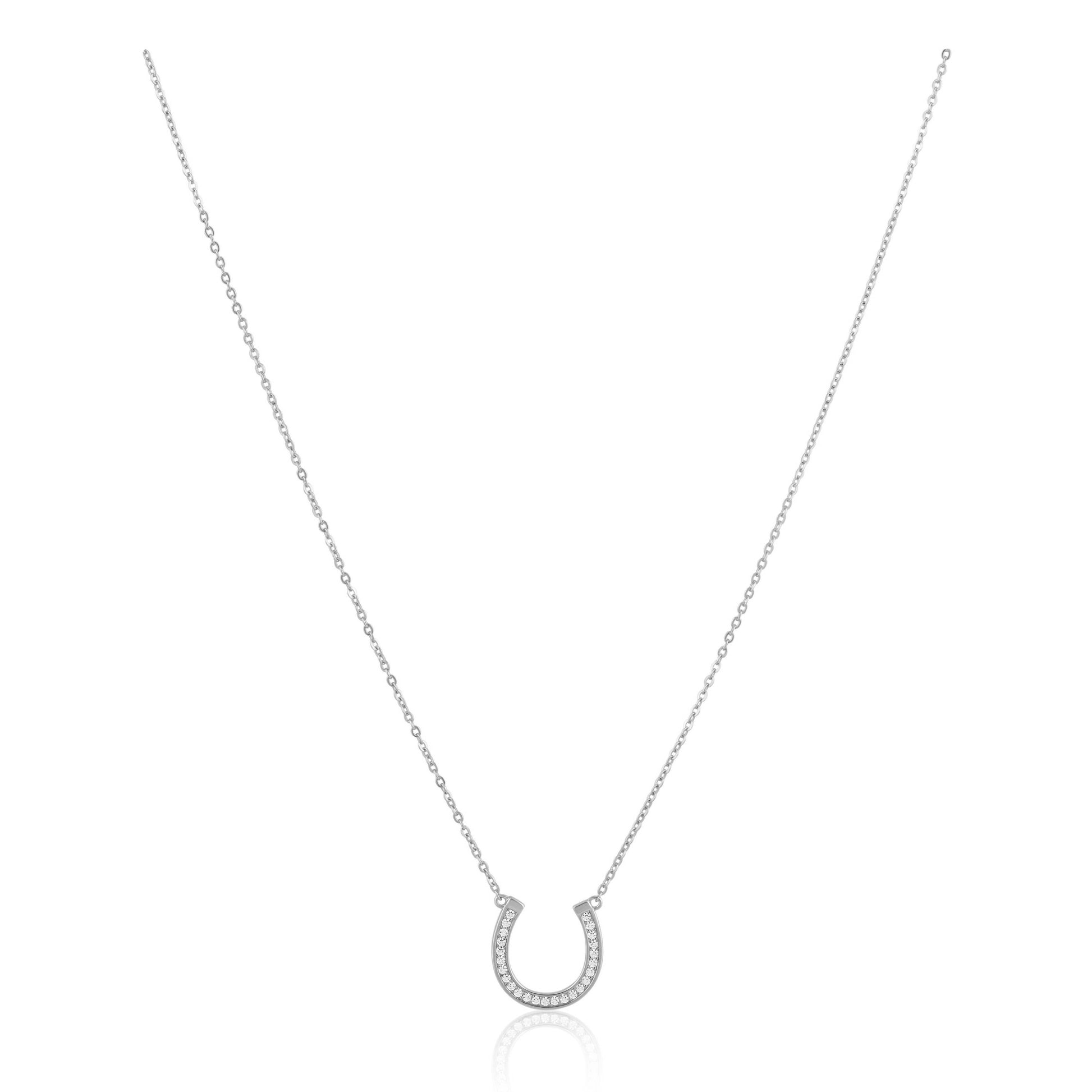 Get lucky with our Montana Horseshoe Necklace! This beautiful necklace features a sparkling pave horseshoe pendant, perfect for adding a touch of glam to any outfit. Show off your love for horses and add a bit of good luck to your day with this stylish piece.