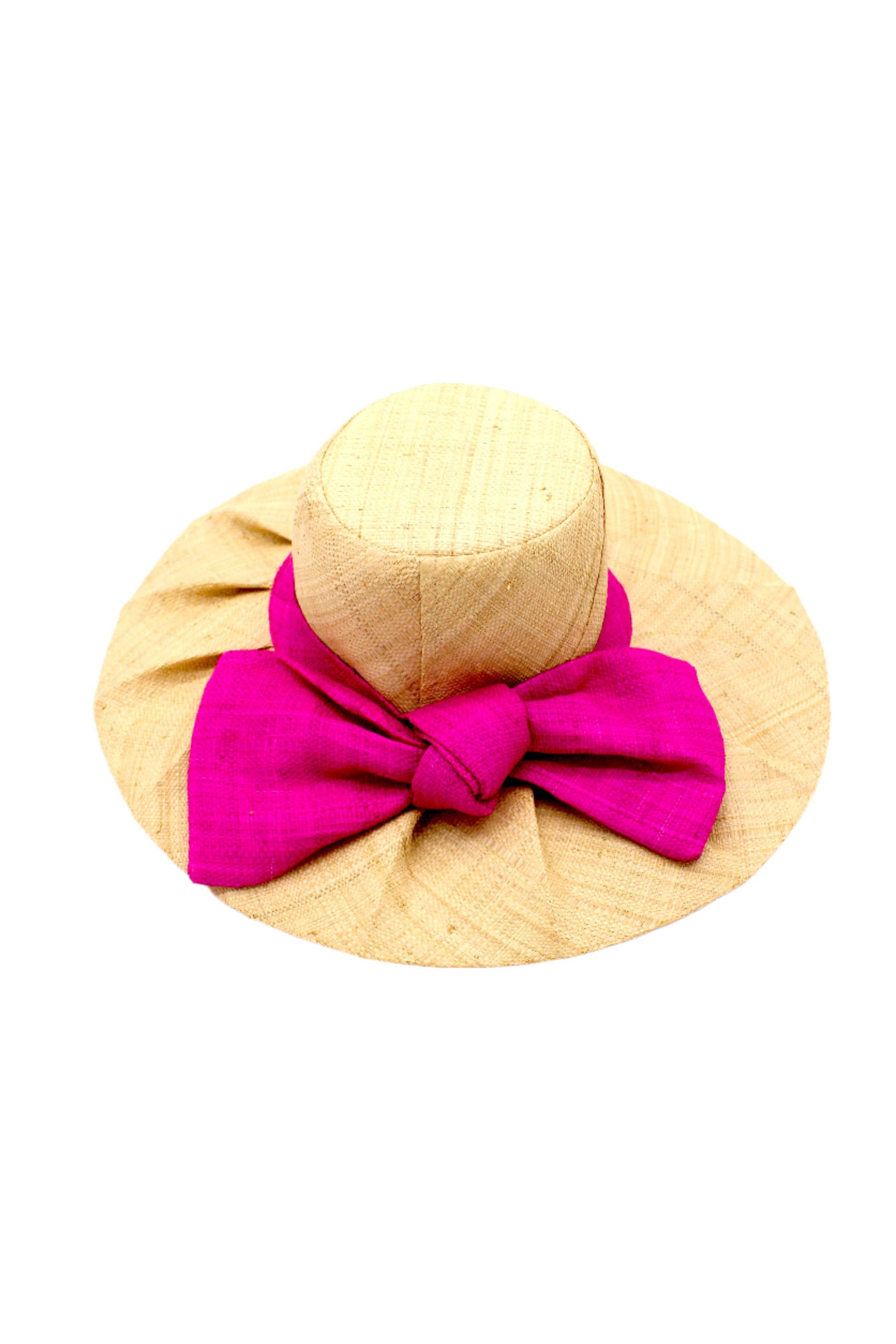 Handmade from all-natural raffia, this sun hat boasts a one-of-a-kind, eco-friendly design. With a wide 5" brim, it offers optimal sun protection and ample coverage for all. One size fits most rounded crown. The addition of a prominent bow with matching hat band adds a lovely feminine touch. Stay fashionably cool and protected this summer with this chic and sustainable straw sun hat. Approximately 5" brim.
